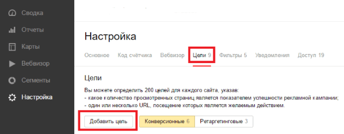 Как настроить цели на сайте