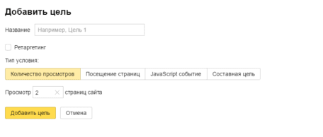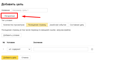 Если цель создается для задания настроек ретаргетинга, не забудьте поставить галочку в соответствующем поле.
