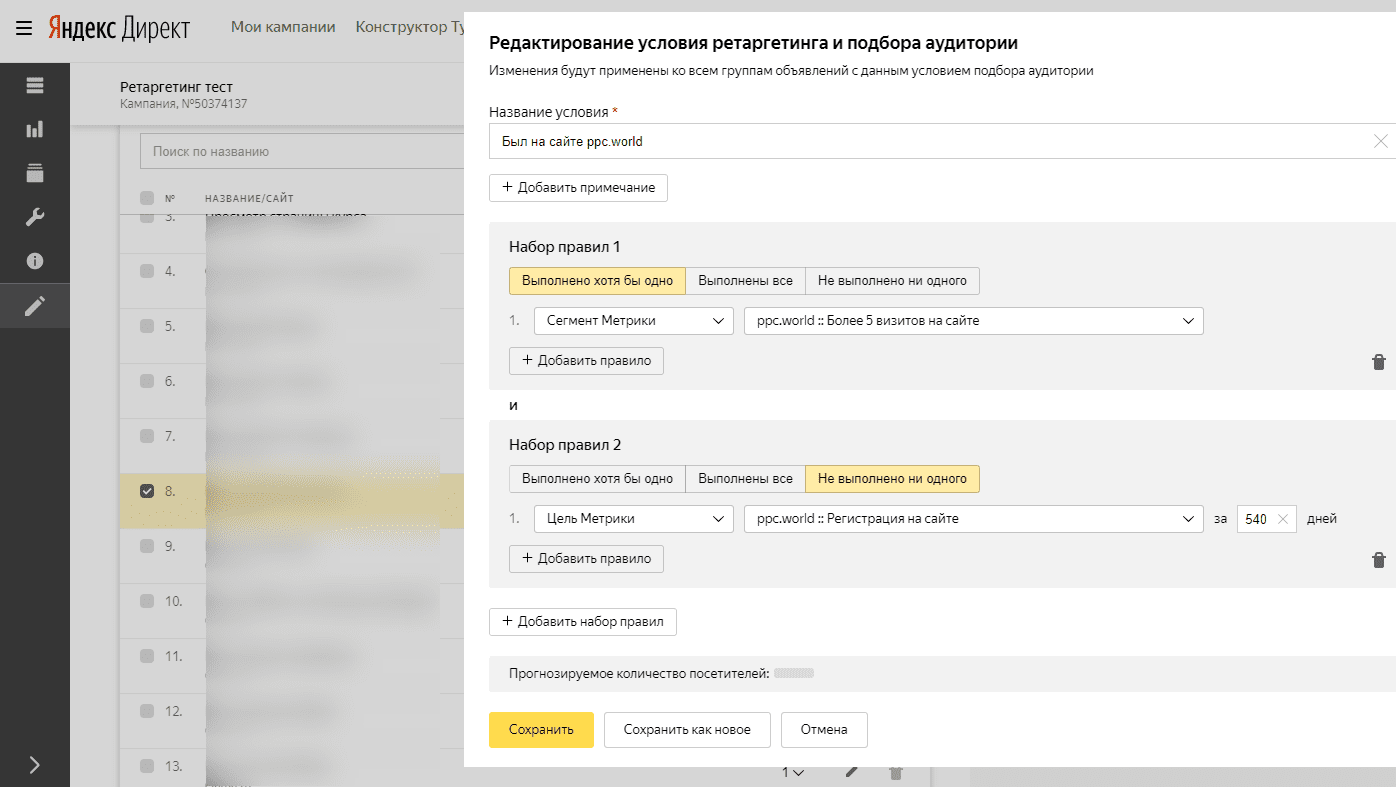 Настройте условия ретаргетинга