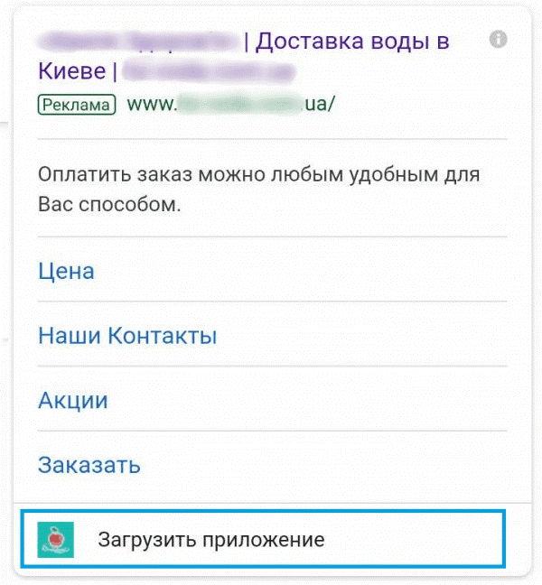 Расширение в виде ссылки на приложение добавляет иконку утилиты и соответствующий призыв к действию. Кликнув по этой части объявления, пользователь может перейти на страницу загрузки.