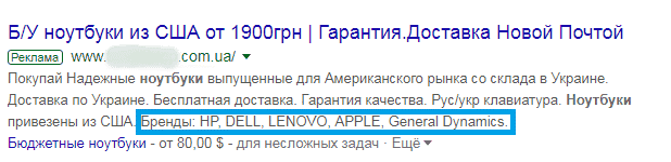 Расширение «Структурированные описания» предлагает три строки дополнительного текста, где можно указать, например, бренды или конкретные преимущества компании-продавца.