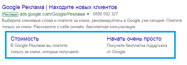 Опция бесплатна. Однако дополнительная информация не всегда выводится вместе с основным текстовым объявлением. Это зависит от рейтинга и прогноза системы. Если объявление имеет хорошую позицию в оценках Google ADS, и предполагается, что расширение будет полезным для кликабельности, оно будет показано.