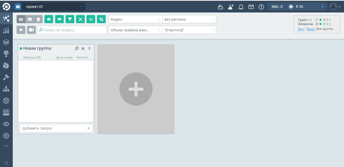 – укажите группы ключевиков;